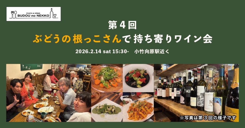 毎回大好評のぶどうの根っこさんにて持ち寄りワイン会 を開催いたします!